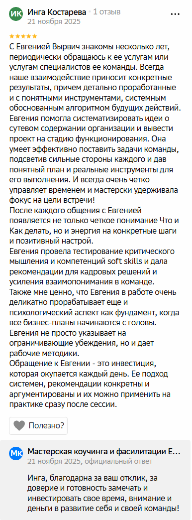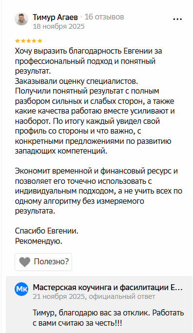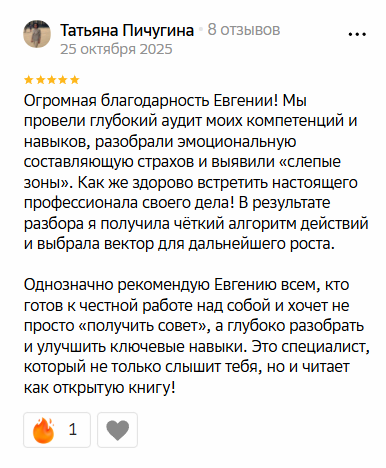 - Обратная связь по результатам глубинного анализа личных компетенций.